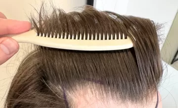 The earliest stage of male hair loss. It is characterized by a deepening temporal recession.