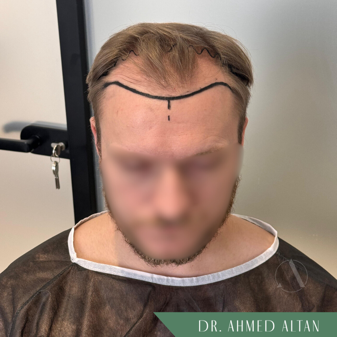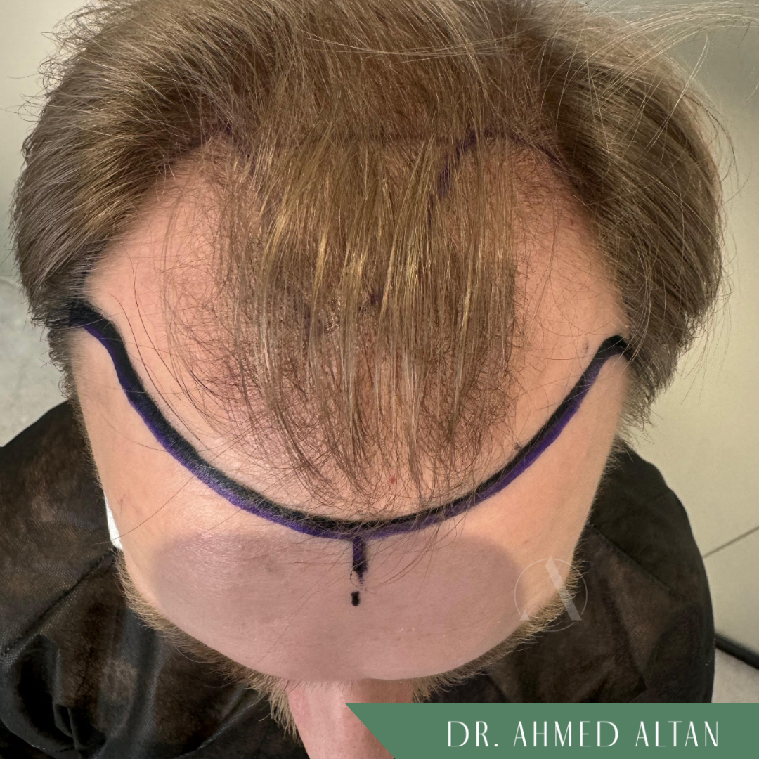 Performed operation with FUE, 1 session, 3800 FUs harvested with 0.7 mm motorized punch.