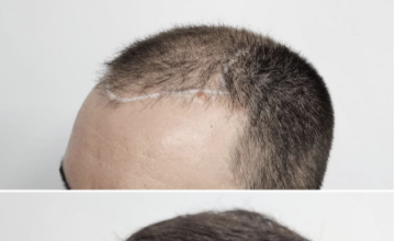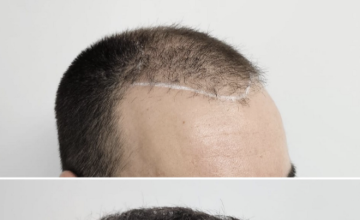 Occurs when the connecting bridge of hair disappears leaving a single large bald area on the front and top of the scalp. The hair on the sides of the scalp remains relatively high.