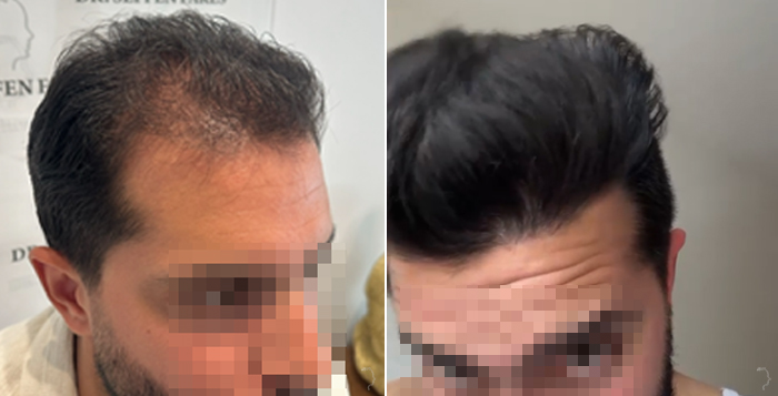 The goal of this procedure was to densify the midscalps, reconstruct the gulfs and strengthen the first frontal hairlines to overcome progressive hair thinning and loss.