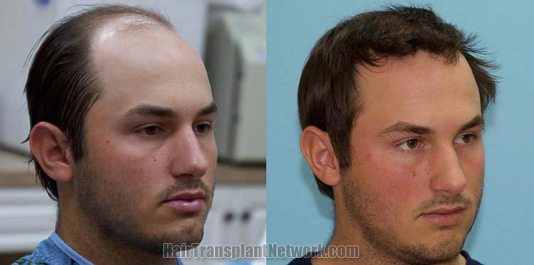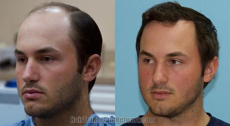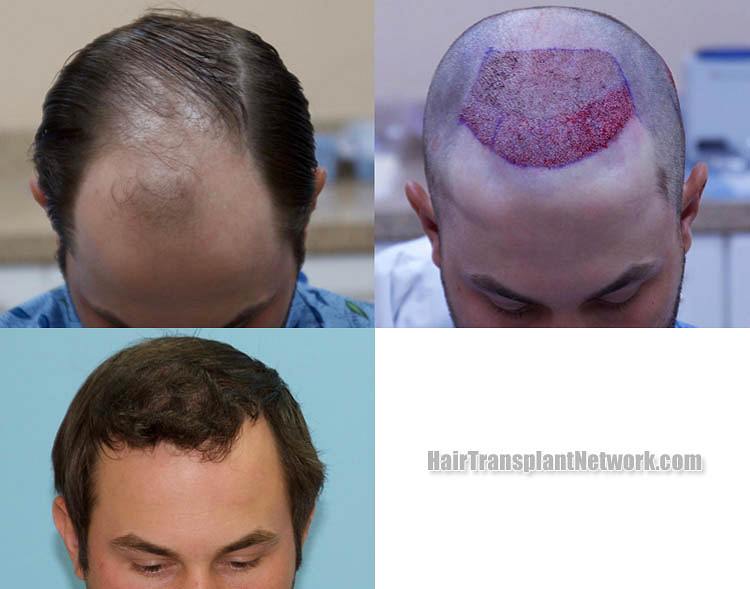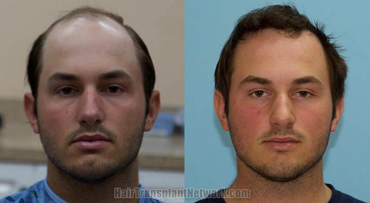 This patient came into our office today after receiving 3000 FUE grafts into his frontal forelock and hairline six months ago. He is stable on finasteride. A 0.80 mm Vortex surrounded punch was used for graft extraction, and Hans Lion Implanters were used for placement. All grafts were harvested and placed by Dr. Vories.