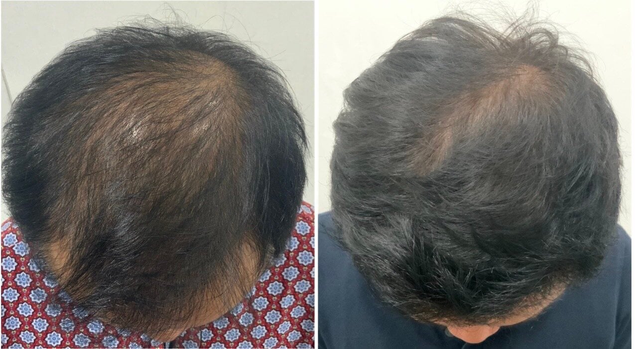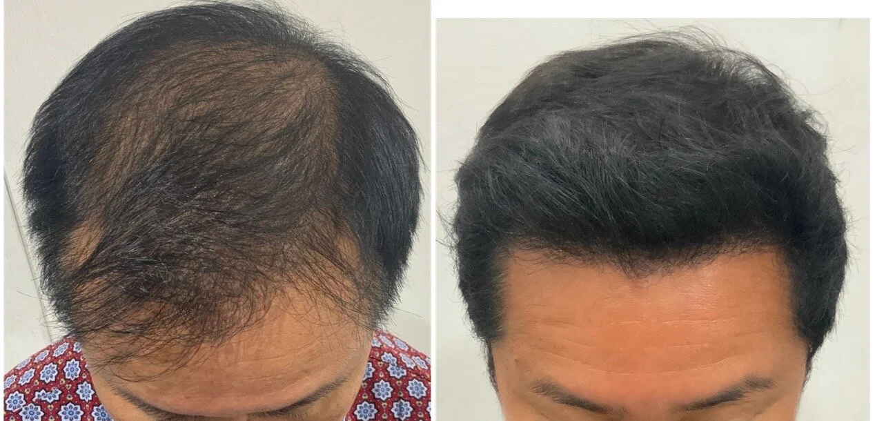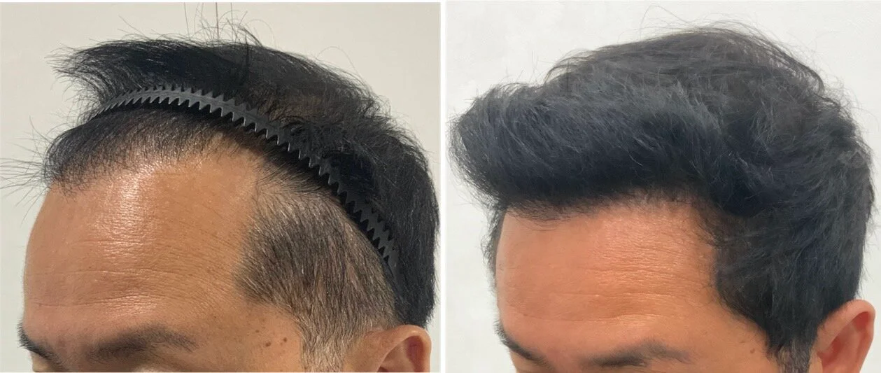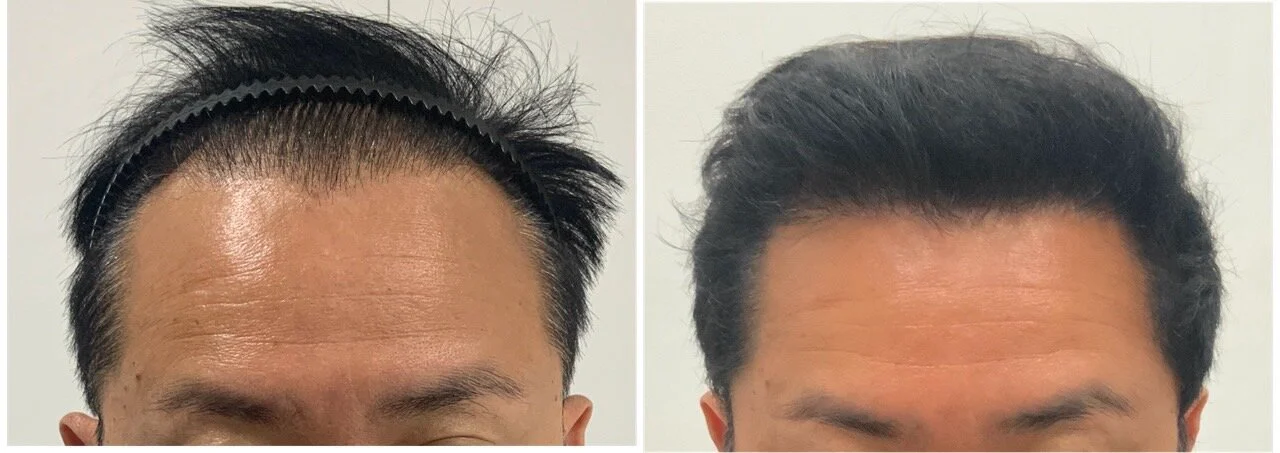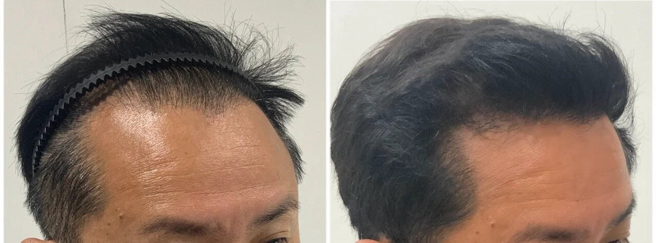 A 49-year-old Asian man underwent an FUT hair transplant and is now 6 months post-procedure. He began taking oral finasteride (1 mg) and minoxidil (5 mg) immediately after the surgery to support hair growth and optimize results. He experienced only minimal hair shedding from shock loss.