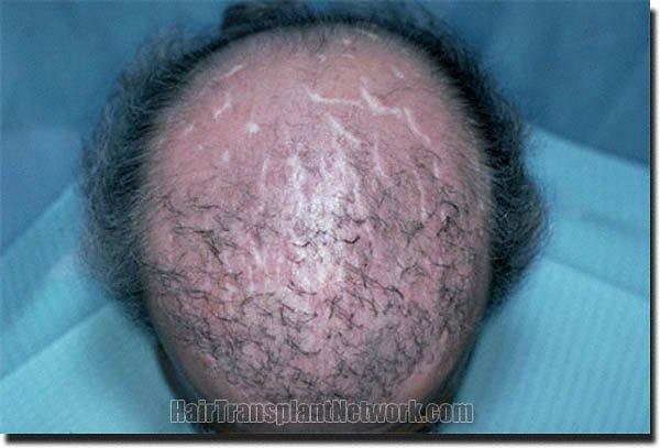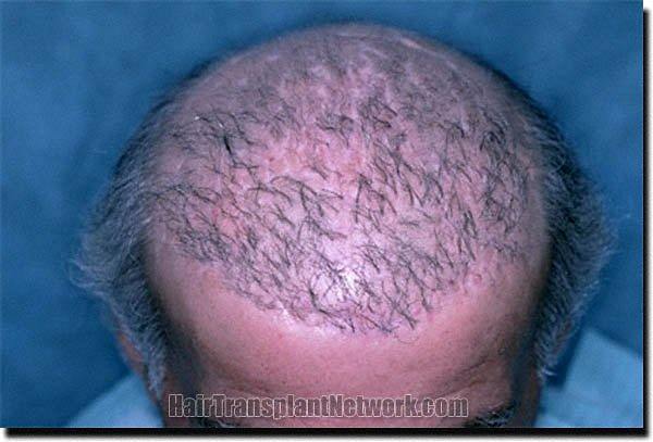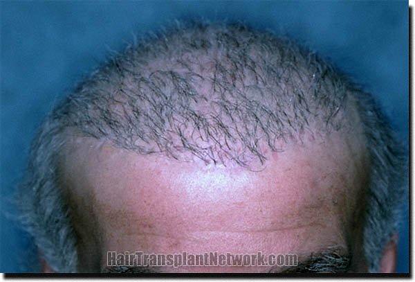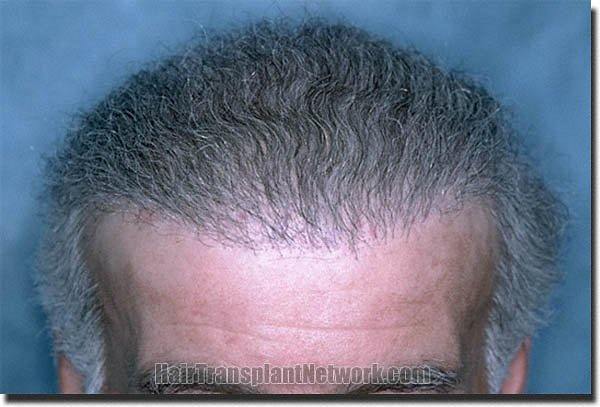 Bernstein Medical - Center for Hair Restoration patient JHG had extensive scarring from a sew-on hairpiece and three hair transplant sessions using plugs, many of which didn’t grow well. Luckily, the patient had salt & pepper hair, ideal hair for a repair. Dramatic improvement was accomplished with just one hair transplant surgery using 1,732 follicular unit grafts.
