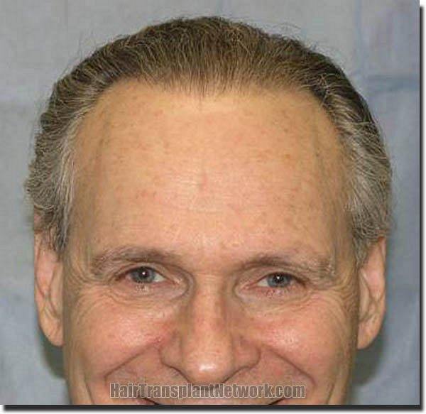 Bernstein Medical patient JDL is a Norwood Class 5A with salt & pepper, straight, medium fine hair and a donor density of 1.8. Results after two hair transplant sessions totaling 3,397 follicular unit grafts.