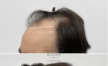 Graft allocation focused on achieving an age-appropriate hairline with efficient use of available donor follicles, providing coverage from the frontal hairline into the mid-scalp. Density planning prioritised natural transition at the hairline while supporting sufficient volume to allow the patient to continue wearing his hair longer.