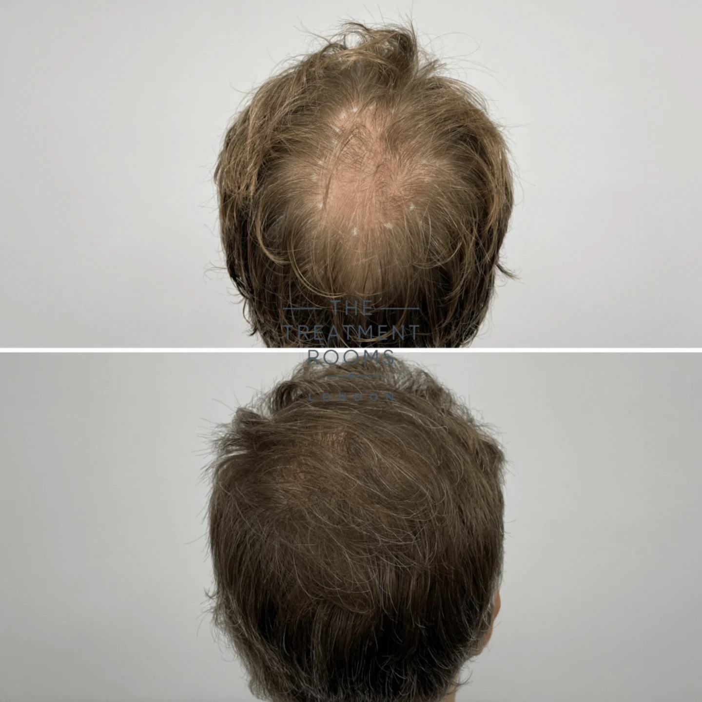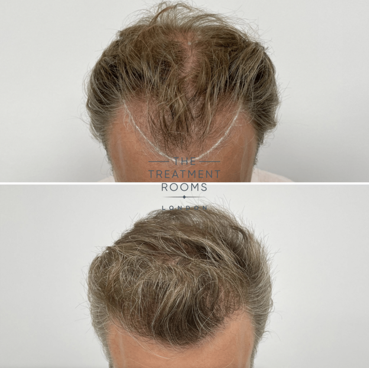 Grafts were allocated to achieve an age-appropriate restoration of the frontal hairline while improving density and coverage within the crown. Single-hair follicular units were utilised at the hairline to maintain a natural transition, with multi-hair grafts placed to build density in the crown and supporting zones.