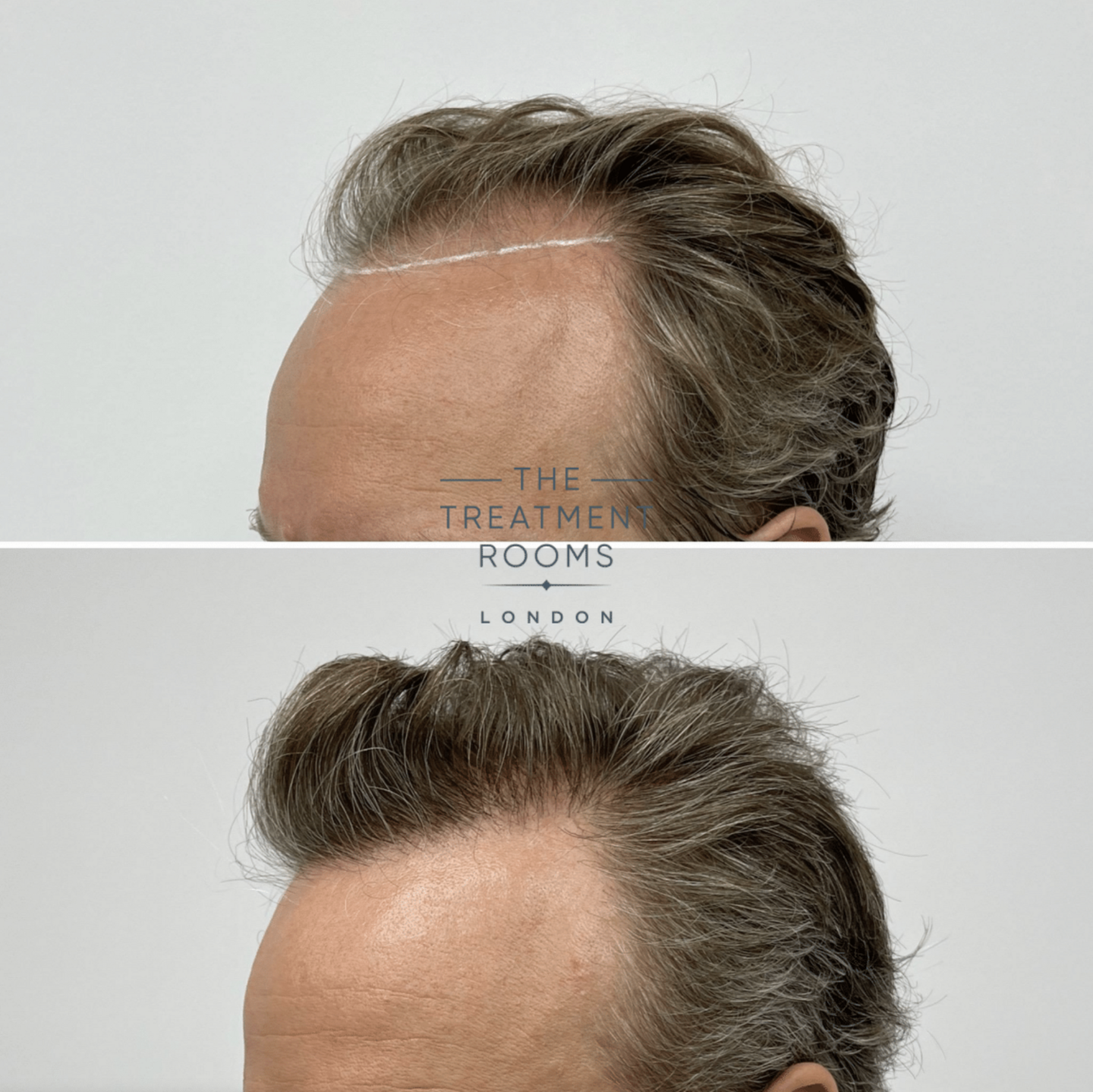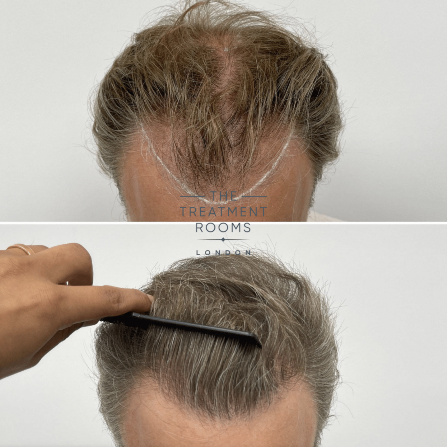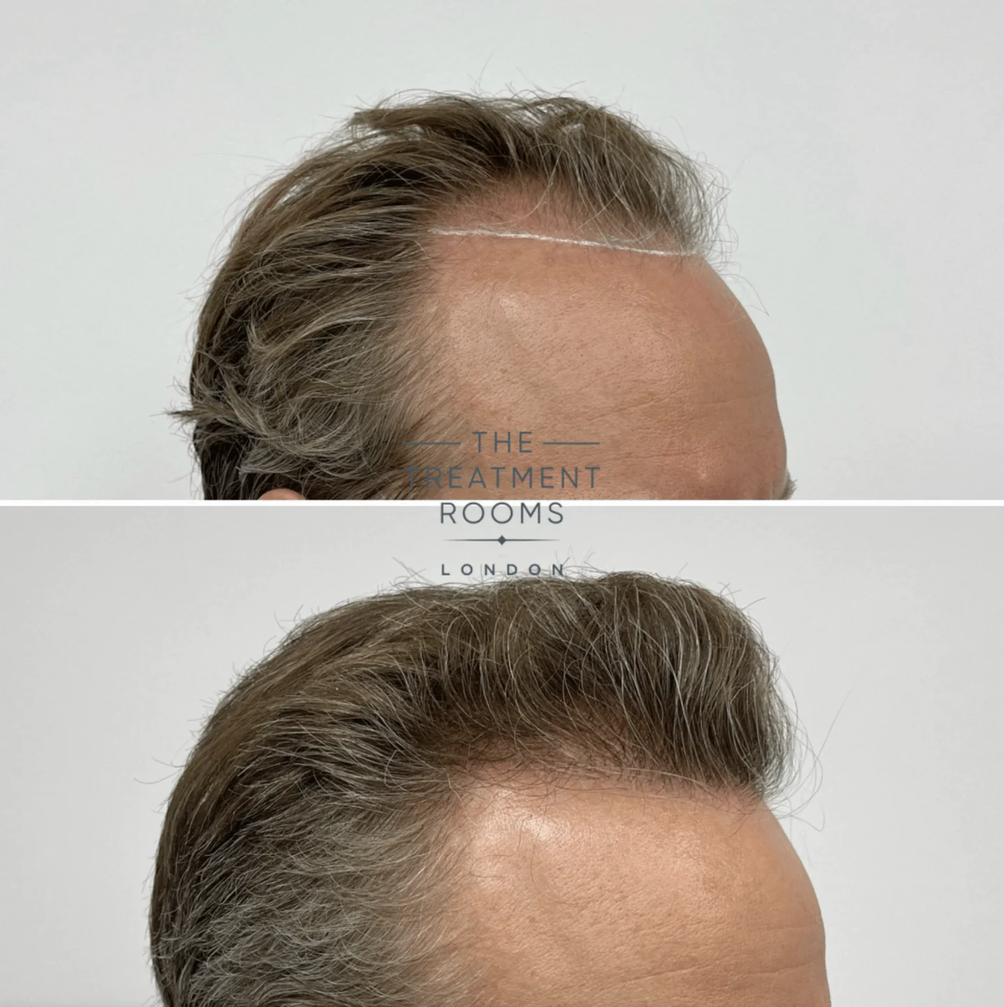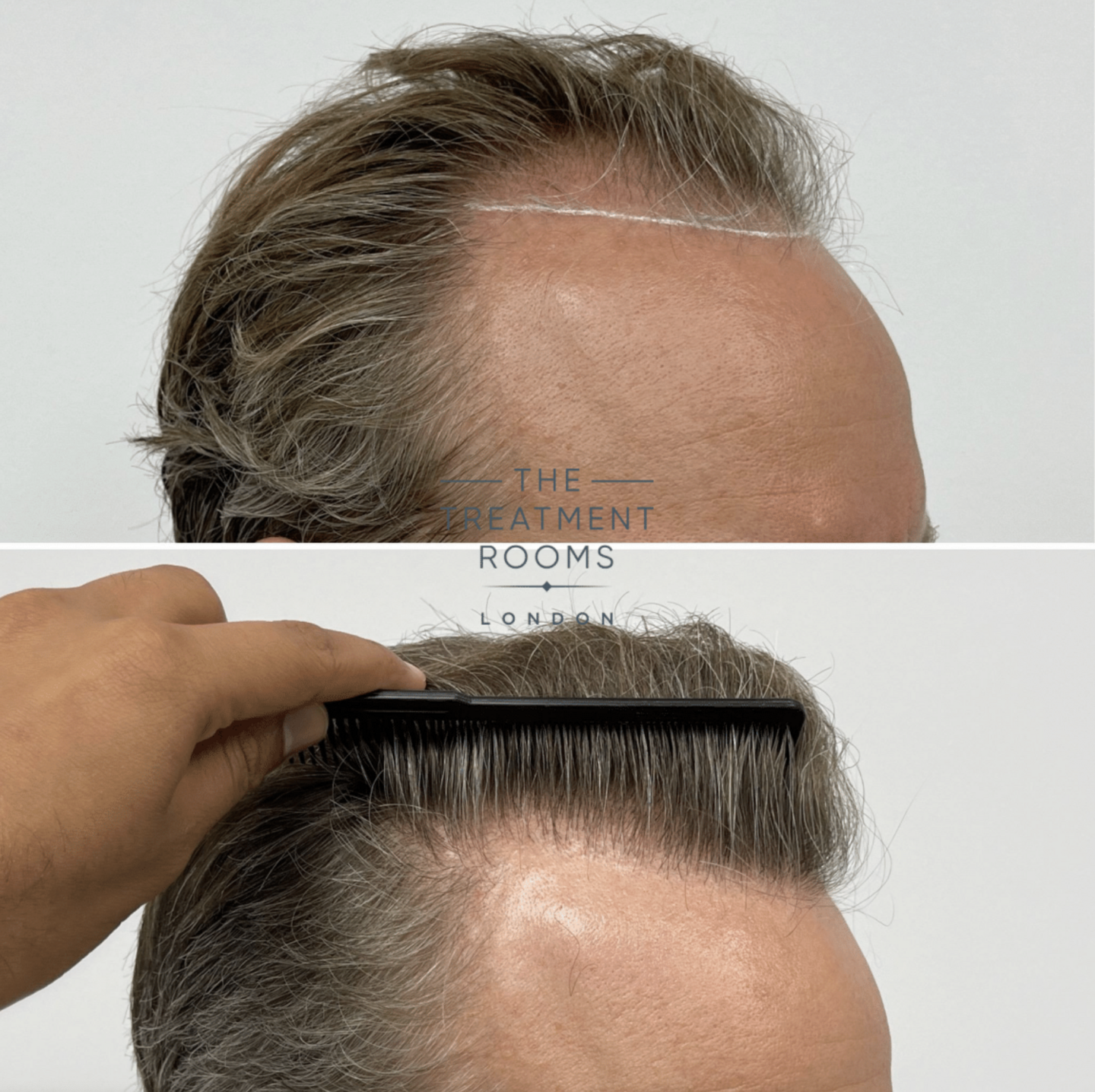 Age-appropriate frontal hairline restoration combined with crown filling, prioritising natural appearance and balanced distribution.